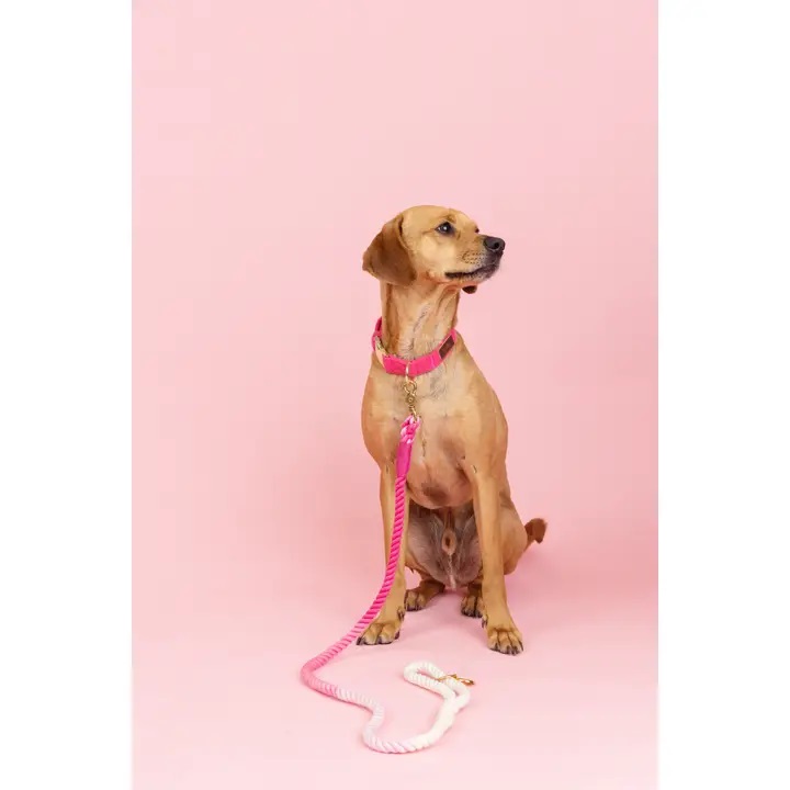 Turn heads on every stroll with our bestselling Pink Papyrus rope leashes. Expertly hand-dyed and crafted from 100% organic cotton, these leashes bring unmatched vibrancy, softness, and strength to your daily adventures. Designed for both form and function, they feature hand-spliced, whipped ends and a sleek brass o-ring—perfect for attaching keys, accessories, or stylish add-ons. With a touch of stretch to ease pulling, our leashes are the ideal choice for active pups whose owners demand comfort and control. Choose between 4ft and 6ft lengths to suit your walking style and mix-and-match with other accessories for an effortlessly chic look. When things get messy? No worries—these leashes are easily washable. Key Features: 100% organic, hand-spun cotton Lightweight and durable, with strength-tested materials Hand-dyed and chemical-free for safety and eco-friendliness Brass o-ring (1” diameter) for convenient attachments Finished with a signature gold Pink Papyrus charm.
